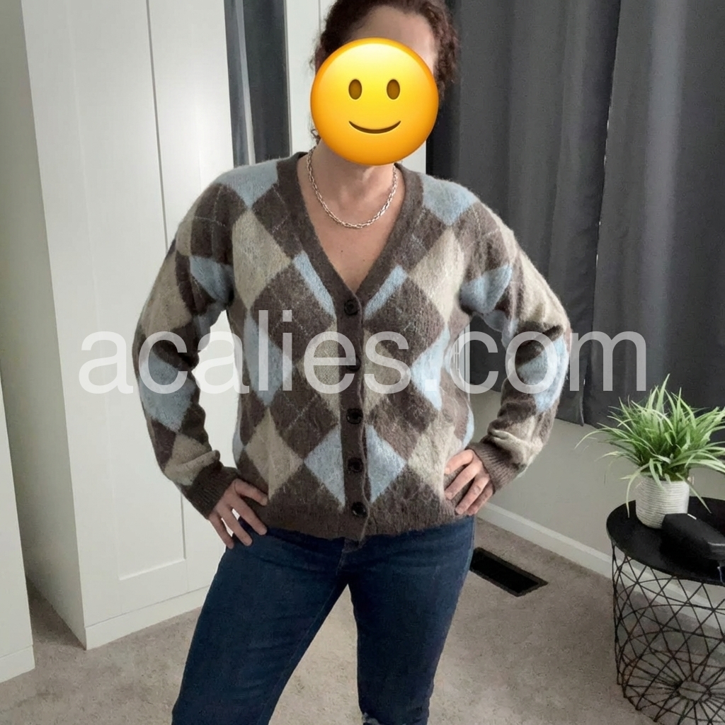 Argyle Geometric Print Cardigan With Button Front In Neutral Tones