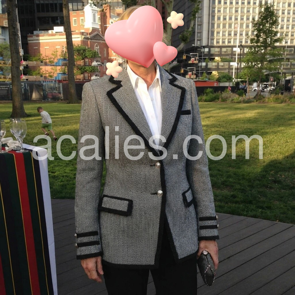 The cut is perfect—tailored but not stiff. It sits nicely on the body and the length is just right. The contrast trim frames the outfit beautifully, and it’s easy to style with a blouse and slacks. Great for work or events.