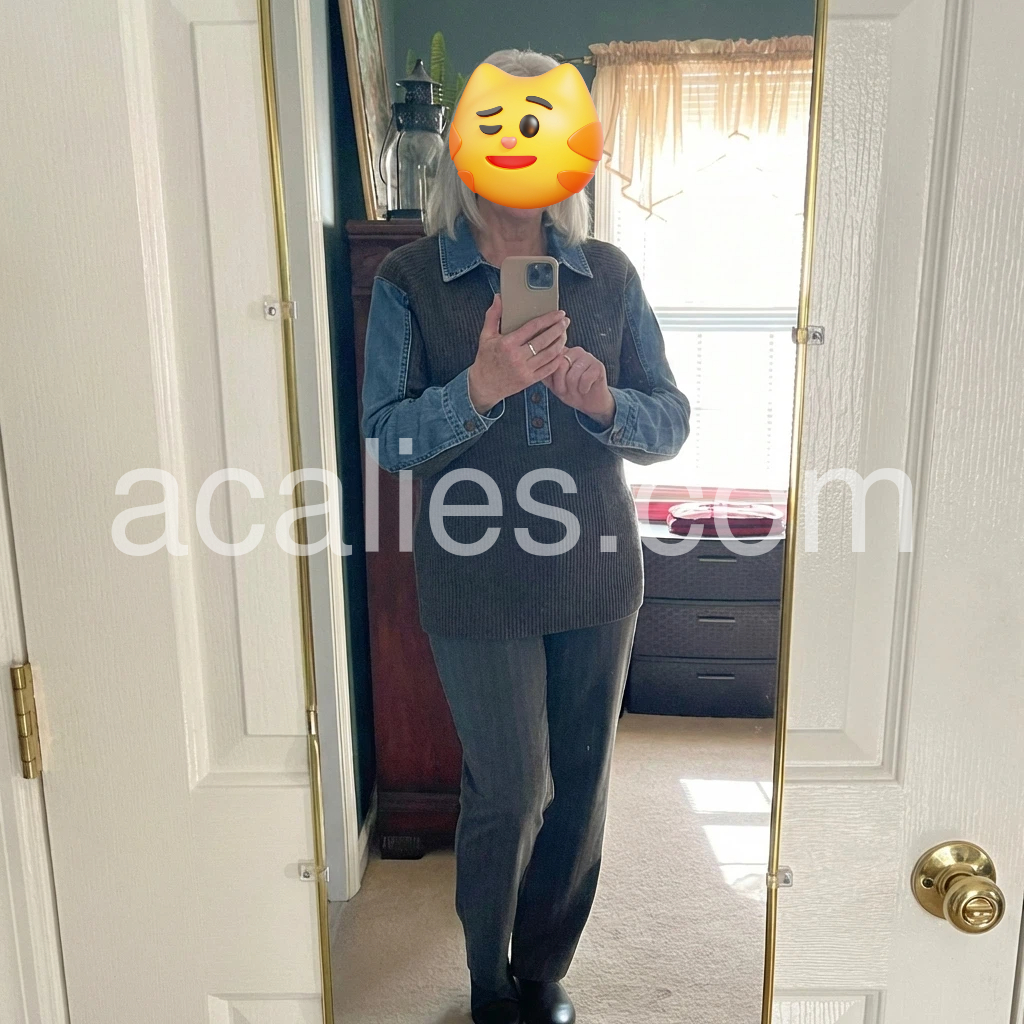 I’m obsessed with this mixed-media top! The ribbed knit is so cozy and stretchy, while the denim sleeves and collar give it a rugged, trendy edge. The curved hem is a nice touch that makes it look more polished, and the button placket is easy to adjust for different necklines. It’s versatile enough to wear with jeans for a casual look or with a skirt for a more put-together outfit. The quality is way better than I expected, and it washes well without shrinking.