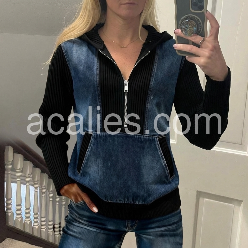 For me, this top is the perfect blend of casual and trendy. The denim panel gives it a cool, everyday vibe, and the black ribbed sleeves make it stand out without being too flashy. I wore it once and received compliments immediately. It’s comfortable around the arms, and the overall fit feels flattering and easy to move in.