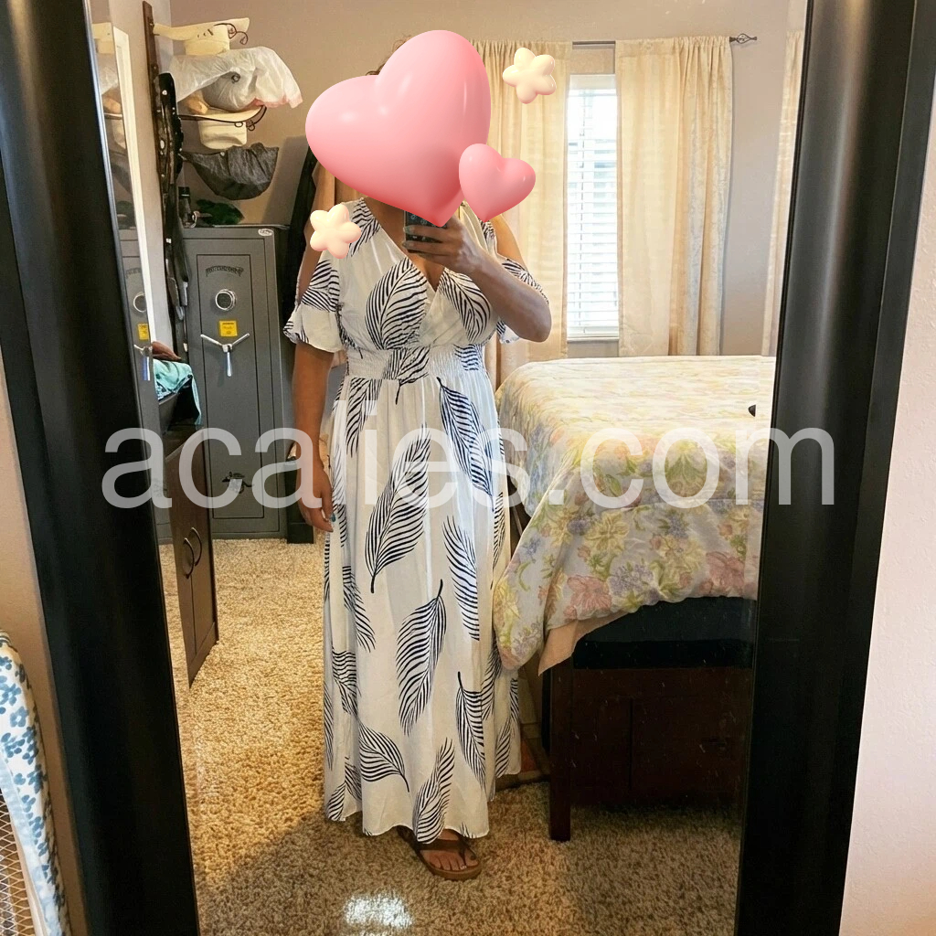 Stunning leaf-print maxi dress—lightweight, flowy, and effortlessly elegant. The white-and-blue color palette is fresh and versatile, while the flattering A-line cut and adjustable tie waist enhance the silhouette. Perfect for summer days or relaxed evenings. Fabric feels soft and breathable, and the fit runs true to size. Shipped quickly and beautifully packaged. A standout piece—I love it!