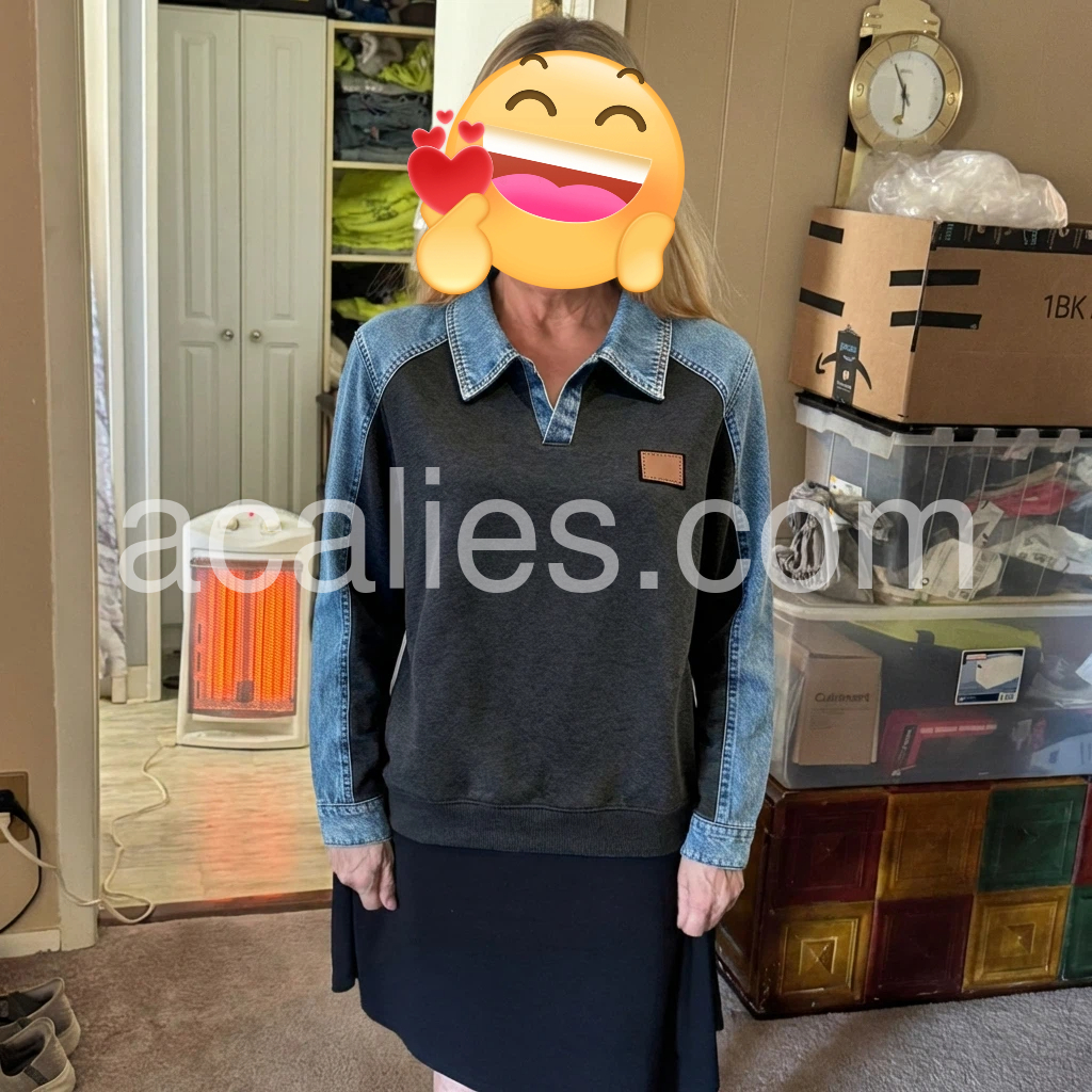 Elevate your denim collection with this striking color block long sleeve top. Crafted from quality denim, the contrasting panel design creates visual interest and modern appeal. The structured long sleeves offer versatility for layering or standalone wear, making it an essential piece for transitional seasons. Perfect for those who appreciate thoughtful design details and seek a standout addition to their everyday wardrobe. Style it with classic jeans for effortless sophistication or pair with neutral bottoms to let the color blocking take center stage.