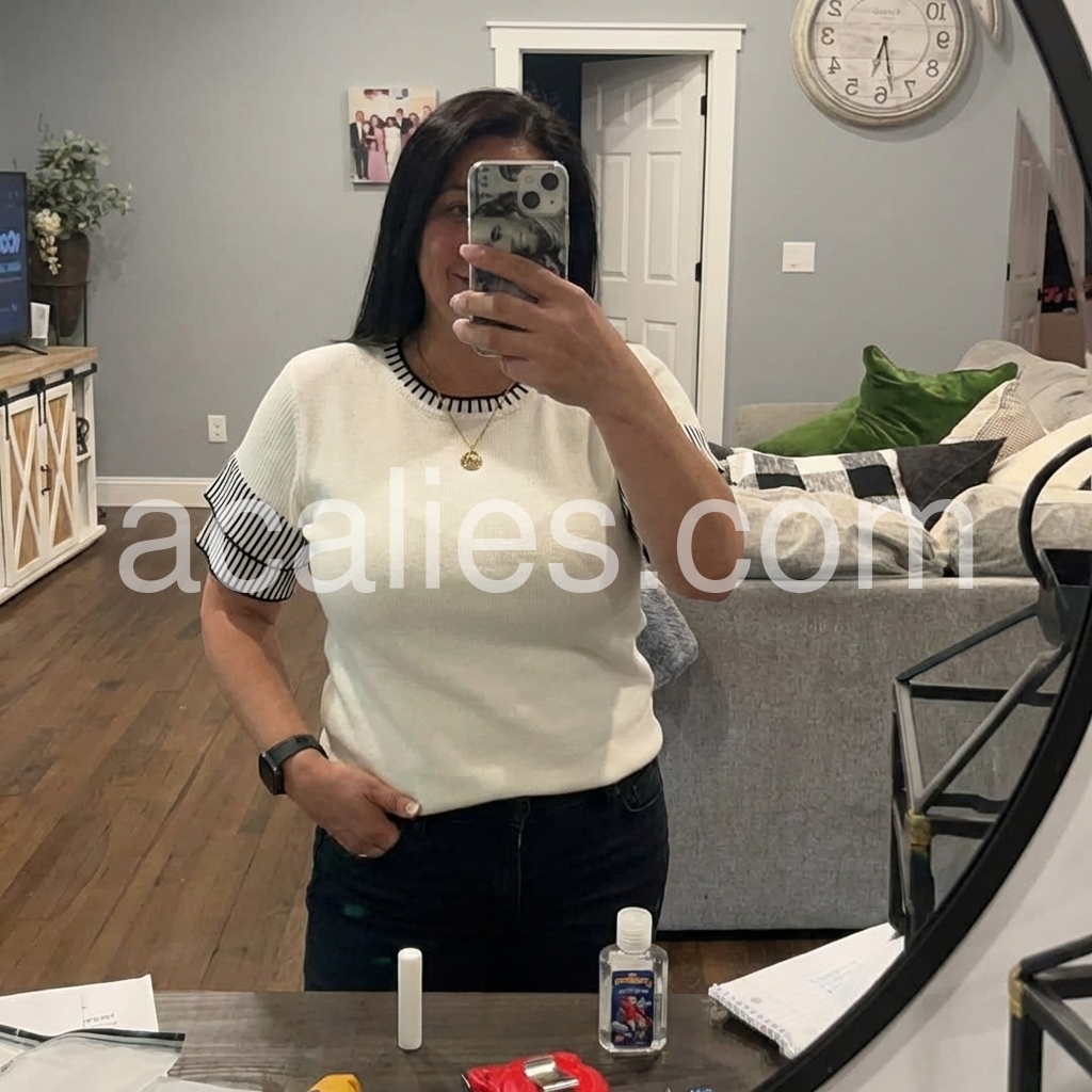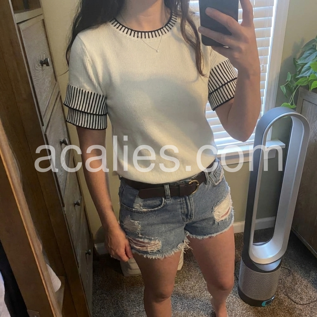 Super cute top. I think it looks best tucked in. I wear a small and the small fit great. This isn’t a tight fitting shirt which I prefer. I don’t like tight things. Recommend it!