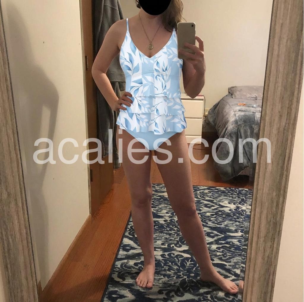 I’m 5’11”, 160#, and normally wear a medium top. I ordered the L. It quickly became my favorite bathing suit, particularly because I have no booty, so the rouching design makes that a little less awkward. 😂