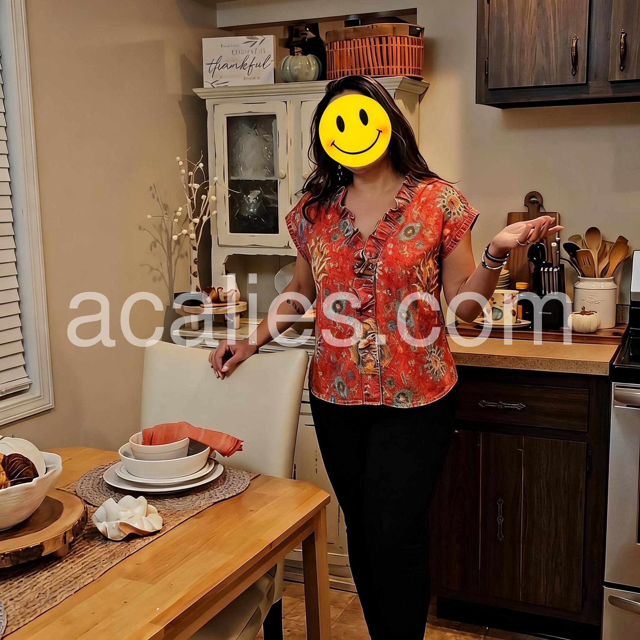This Short Sleeve top features a rich red base with intricate mandala and floral patterns. The ruffled V-neckline adds a feminine, bohemian flair. Lightweight fabric drapes softly for a relaxed fit. Perfect for pairing with white jeans or denim shorts. Ideal for summer days with a touch of global style.