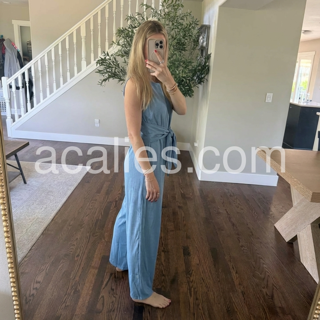 Looks great and is super comfy. I can wear this around the house and feel like I'm in loungewear, but I can also wear this to a nice restaraunt or event and feel like I look nice. The neck is not too tight and the fabric is not itchy or irritating. And the legs are a bit long for my body proportions, they're just right for I wear boots with a bit of a heel. It's also not too feminine, something I struggle to find in jumpsuits like this.