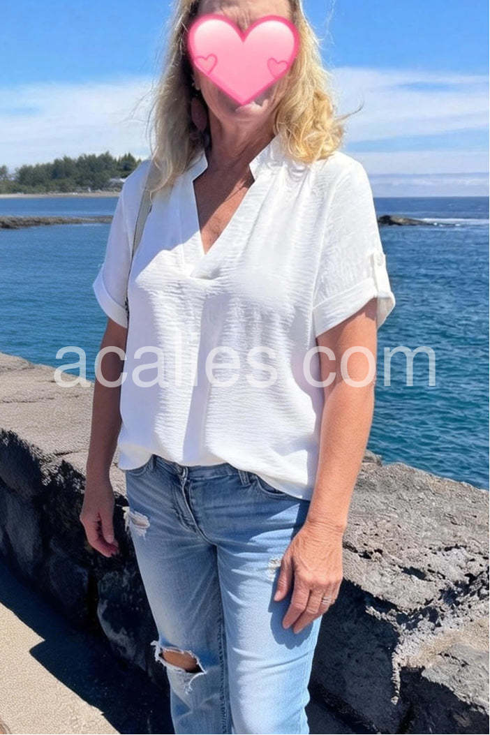 Look your best in this White Plain Half Sleeve Top. Featuring a timeless design and made from high-quality fabric, this top is designed to keep you looking sharp and feeling comfortable. Whether you're looking for something to wear at the office or a casual outing, this is the perfect piece to add to your wardrobe.