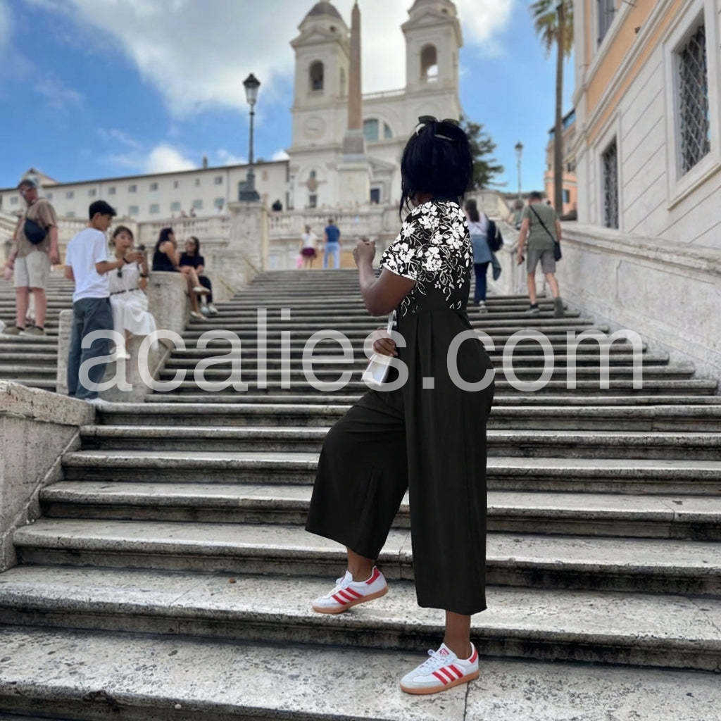 Expertly designed with a trendy black floral print, this jumpsuit is sure to elevate your style. Featuring half sleeves and a comfortable fit, it's perfect for any occasion. Made with high-quality materials, this jumpsuit is a must-have for any fashion-forward individual.