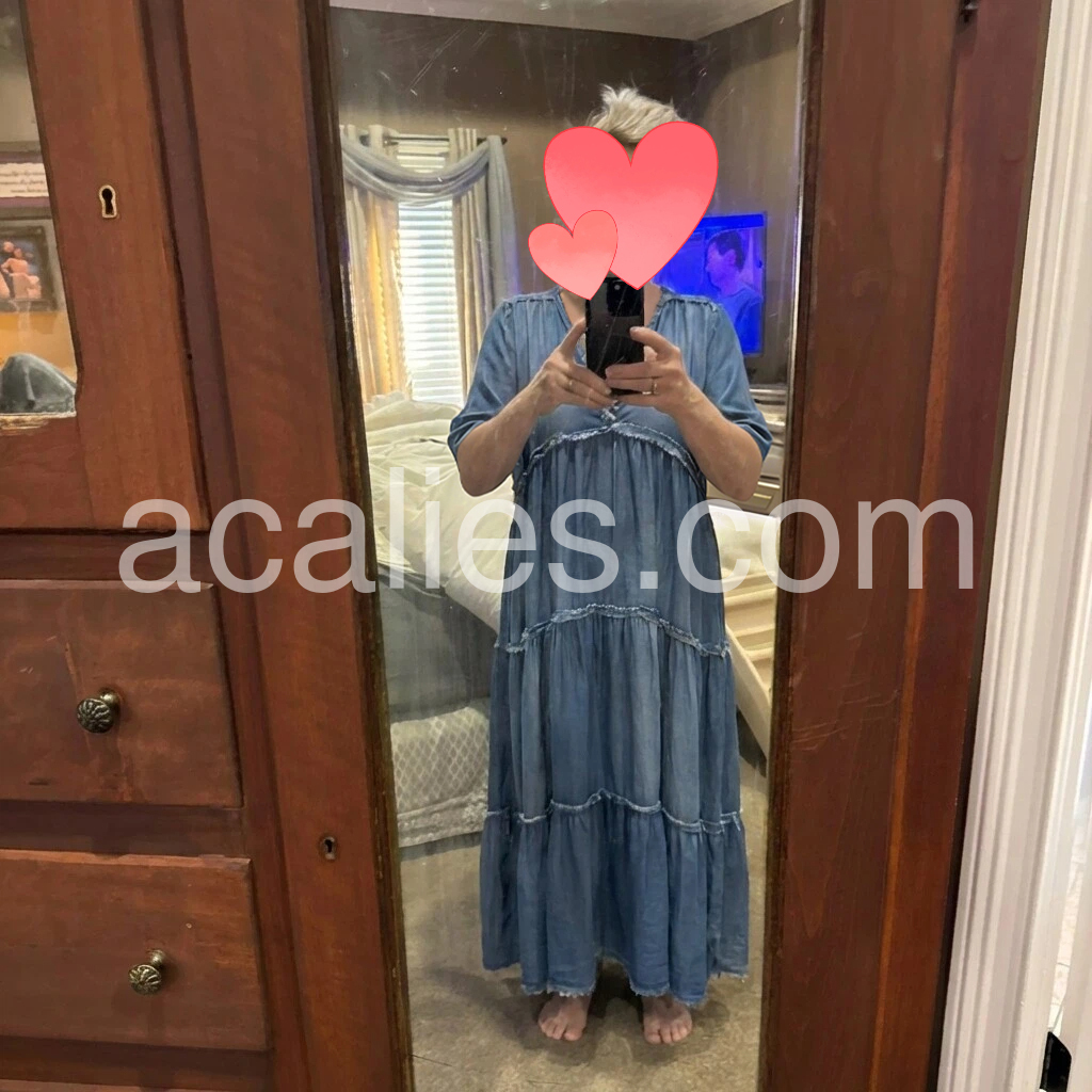 This Blue Denim Plain 3/4 Sleeve Maxi Dress is a must-have for any wardrobe. Its classic design and 3/4 sleeves make it versatile for any occasion. The high-quality denim material ensures durability and comfort, while the plain blue color adds a touch of sophistication. Elevate your style with this timeless piece.